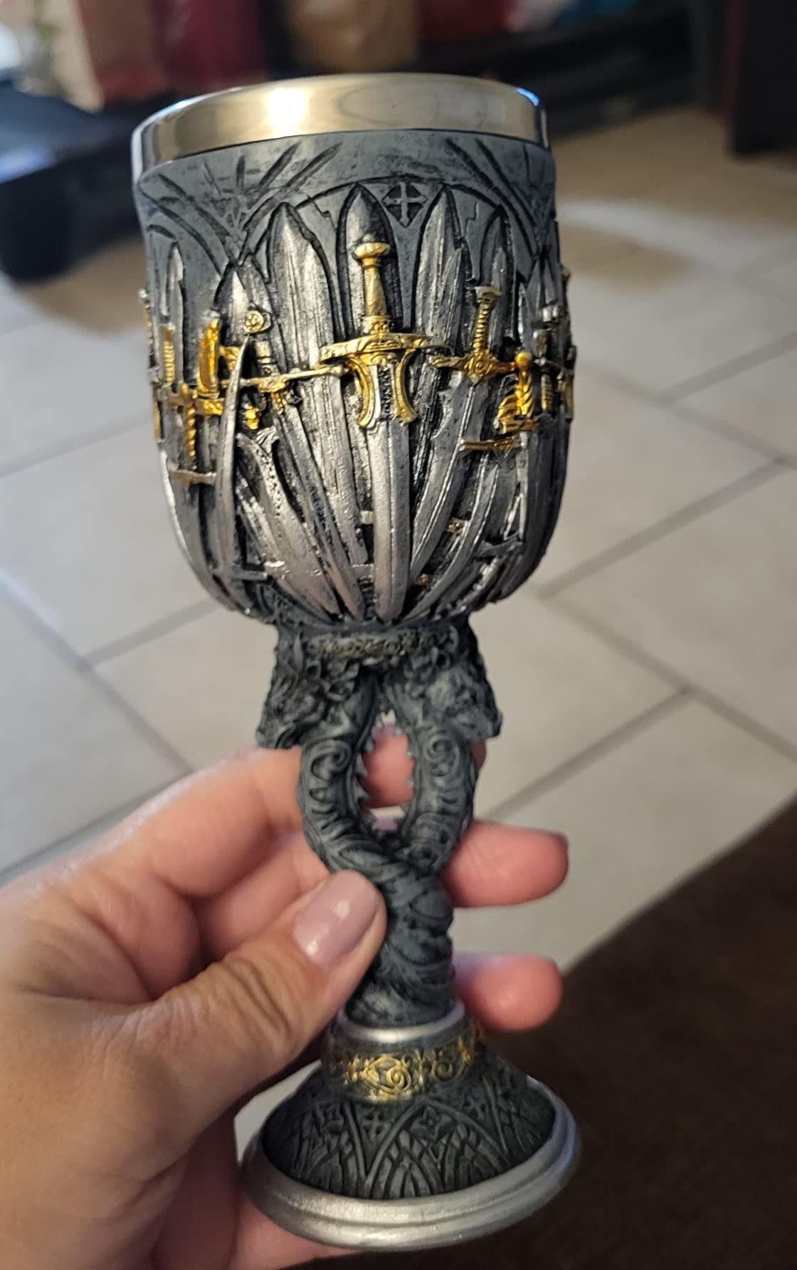 La uso en nuestras noches temáticas con amigos: la copa añade ambiente y es resistente — además enfría bien el vino. Calidad y estilo medieval en una sola pieza.
